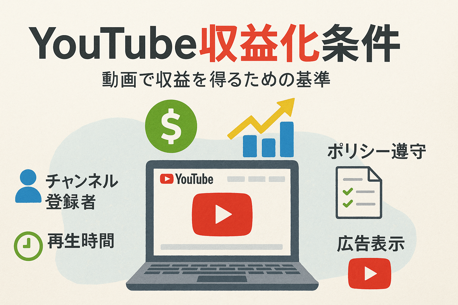 これらの運用テクニックを実践し、登録者数や再生時間などYouTube収益化条件を確実に達成しましょう。